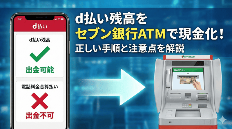 セブン銀行でのd払い現金化については、下記のページで解説しています。